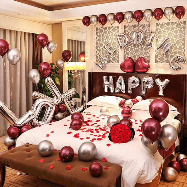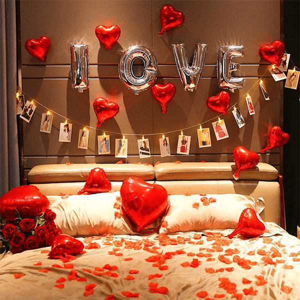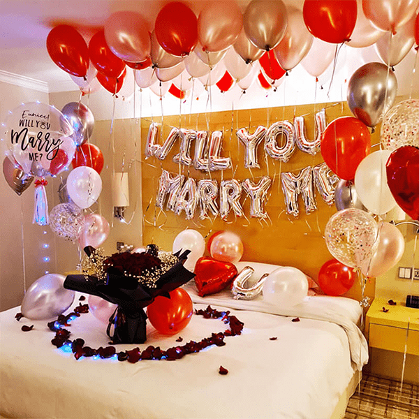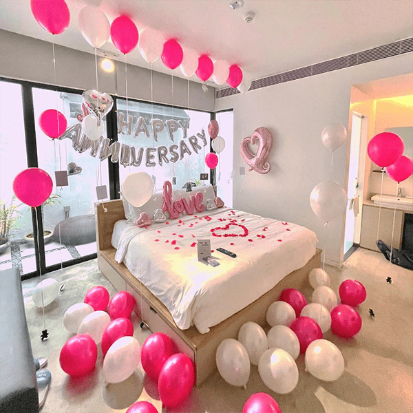 Surprise your loved one with a room filled with balloons. A perfect surprise at home for anniversaries.